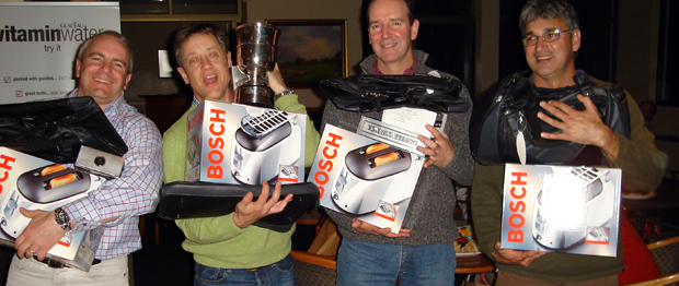 The first prizes went to the team of Mike Hyne, Andrew Campbell, Len Worthington-Smith and Brian Pyle, with closest to the pin going to Mike Hyne, Craig Tate, Andrew Campbell and Graham MacFarlane. The longest drive was won by Mike Minkley.